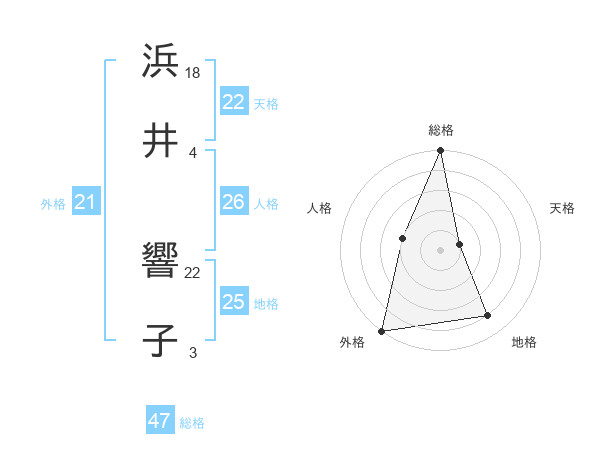 浜井 響子さんの総格は47画の5点!