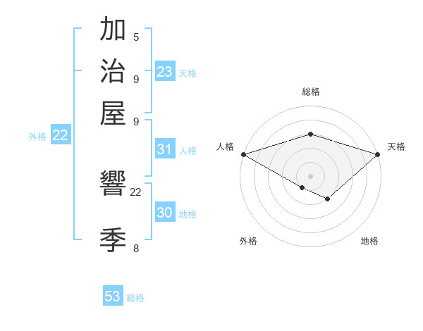加治屋 響季さんを姓名の画数から五運を鑑定