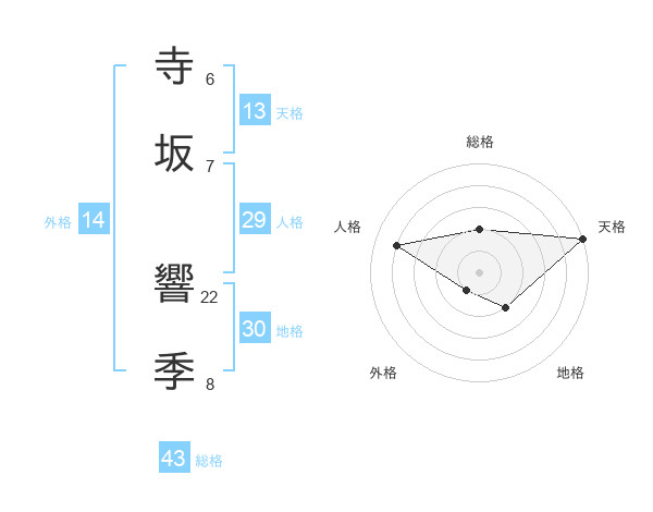 寺坂 響季さんの天格は13画の5点!