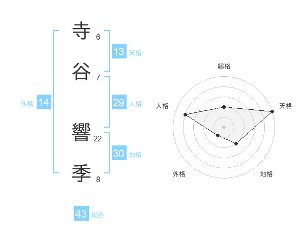 寺谷 響季さんを姓名の画数から五運を鑑定