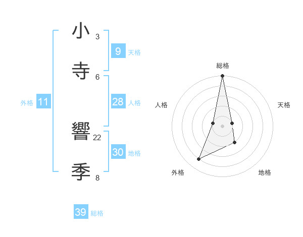 小寺 響季さんの総格は39画の5点!