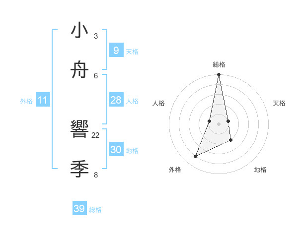 小舟 響季さんの総格は39画の5点!
