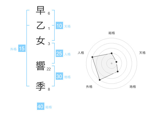早乙女 響季さんを姓名の画数から五運を鑑定