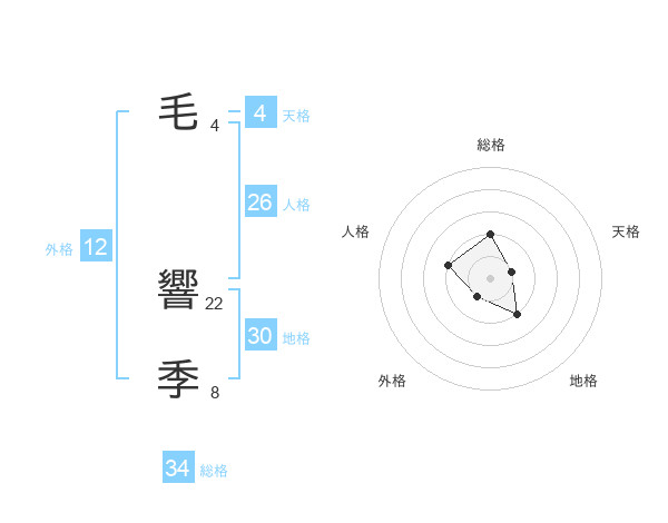 毛 響季さんを姓名の画数から五運を鑑定