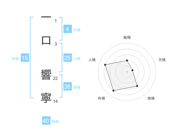 一口 響寧さんの外格は15画の4点!