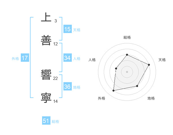 上善 響寧さんの総格は51画の3点!