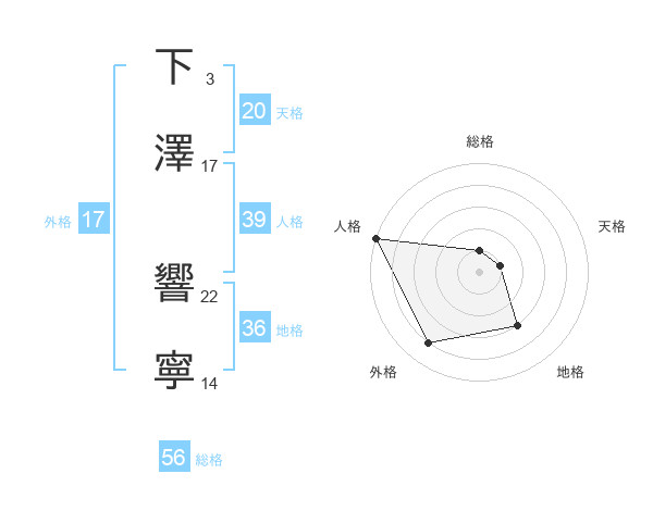 下澤 響寧さんの人格は39画の5点!