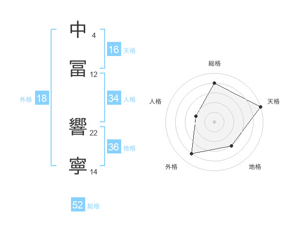 中冨 響寧さんを姓名の画数から五運を鑑定