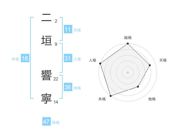 二垣 響寧さんを姓名の画数から五運を鑑定