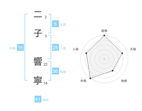 二子 響寧さんの総格は41画の5点!