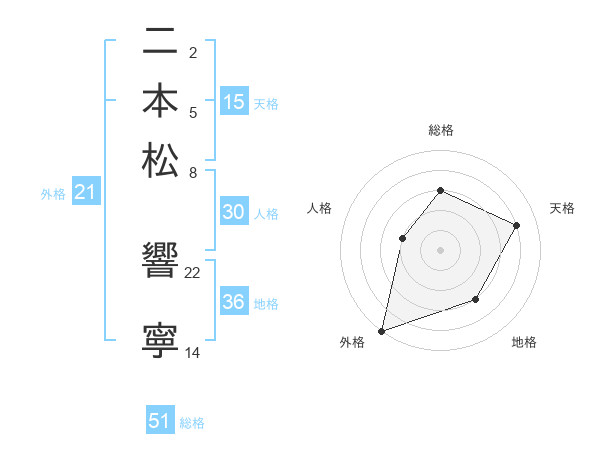 二本松 響寧さんを姓名の画数から五運を鑑定
