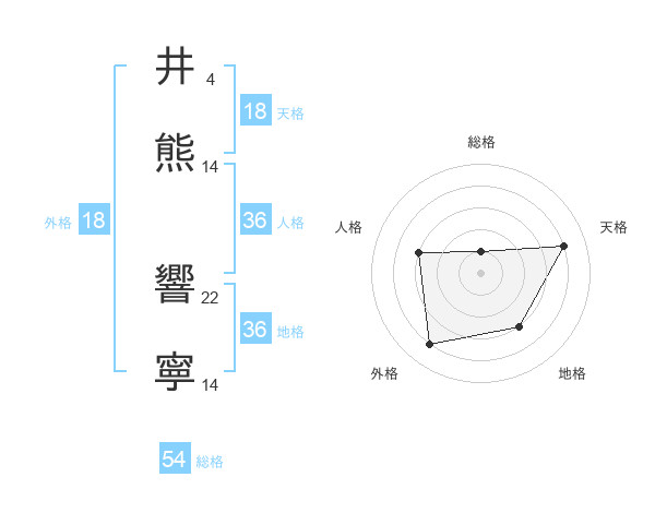井熊 響寧さんの天格は18画の4点!