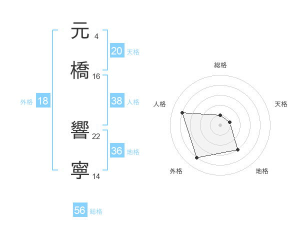 元橋 響寧さんを姓名の画数から五運を鑑定