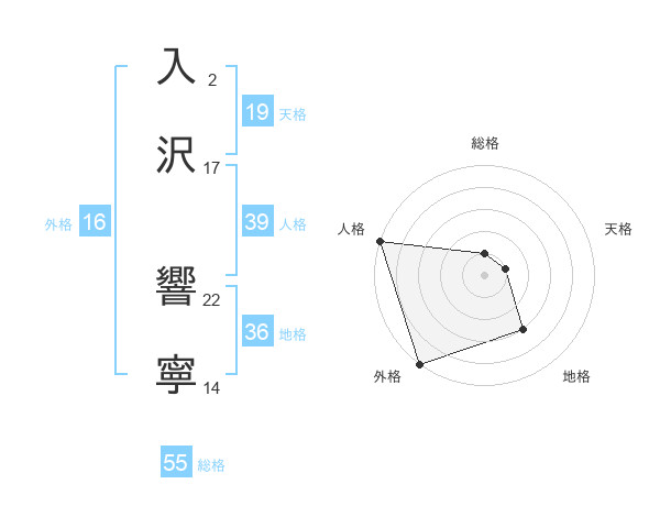 入沢 響寧さんの外格は16画の5点!