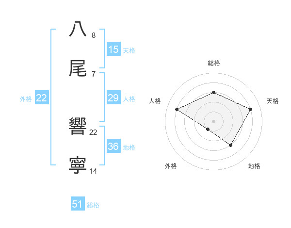 八尾 響寧さんを姓名の画数から五運を鑑定