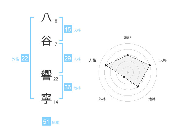 八谷 響寧さんの総格は51画の3点!