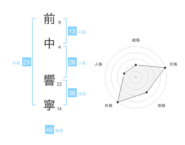 前中 響寧さんの総格は49画の2点!