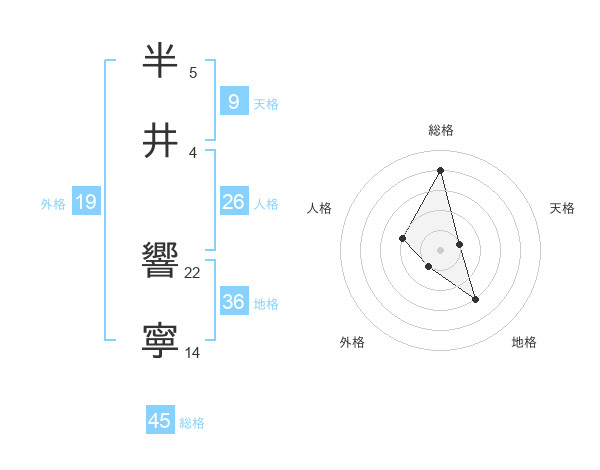 半井 響寧さんの総格は45画の4点!