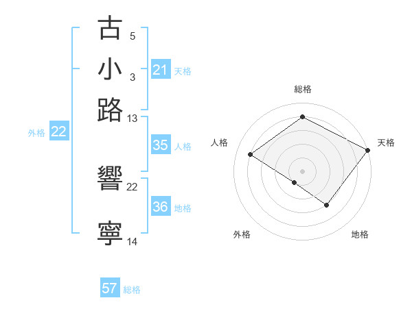 古小路 響寧さんの総格は57画の4点!