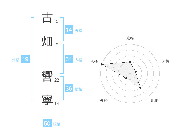 古畑 響寧さんの総格は50画の2点!