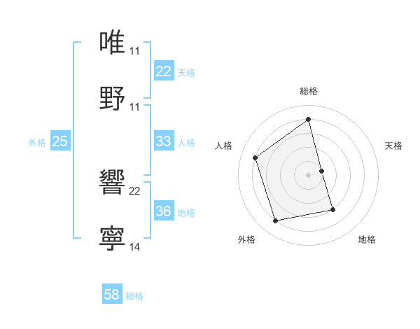 唯野 響寧さんの総格は58画の4点!
