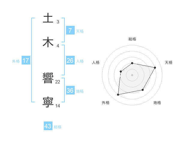 土木 響寧さんを姓名の画数から五運を鑑定