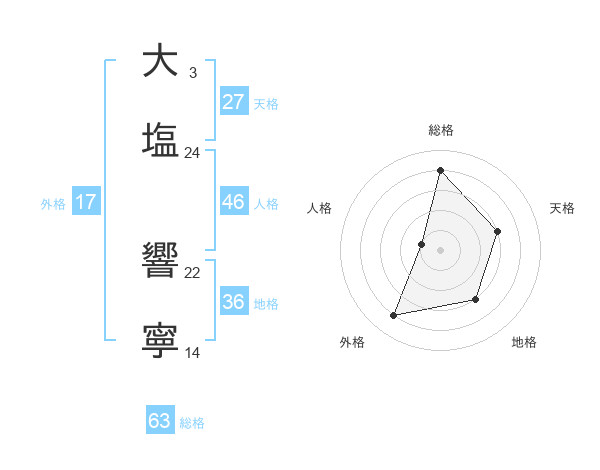 大塩 響寧さんを姓名の画数から五運を鑑定
