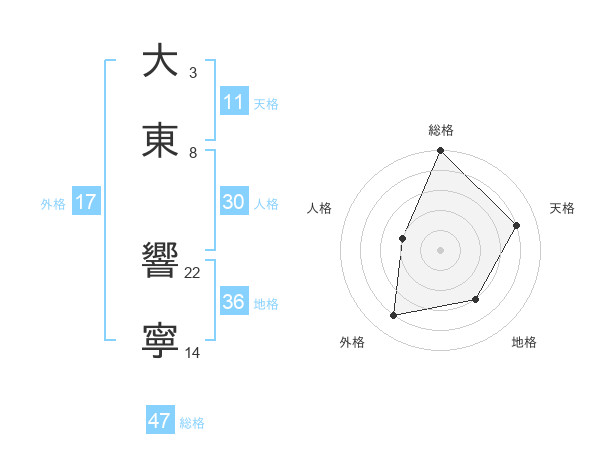 大東 響寧さんの総格は47画の5点!