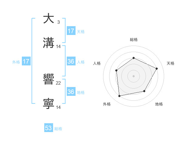 大溝 響寧さんの総格は53画の3点!