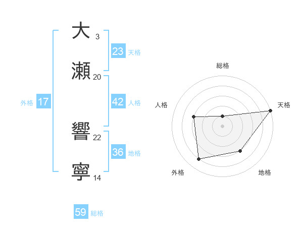 大瀬 響寧さんを姓名の画数から五運を鑑定