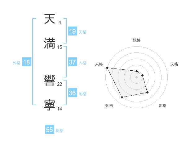天満 響寧さんの総格は55画の1点!