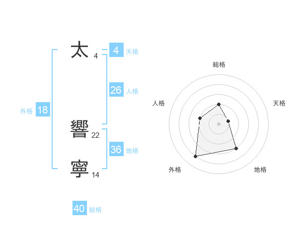 太 響寧さんの外格は18画の4点!