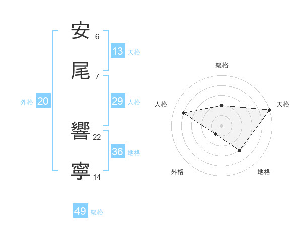 安尾 響寧さんを姓名の画数から五運を鑑定