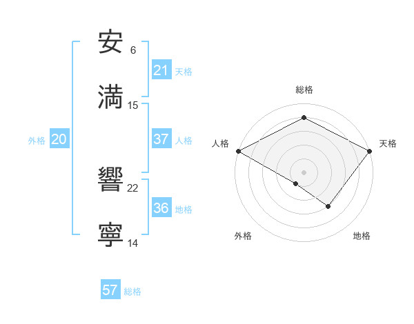 安満 響寧さんの総格は57画の4点!