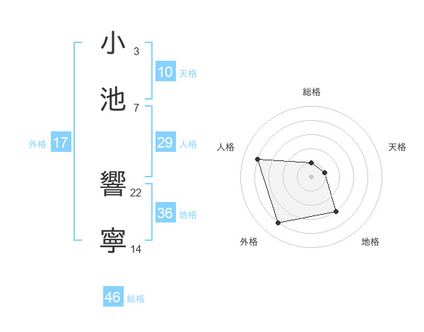 小池 響寧さんの総格は46画の1点!