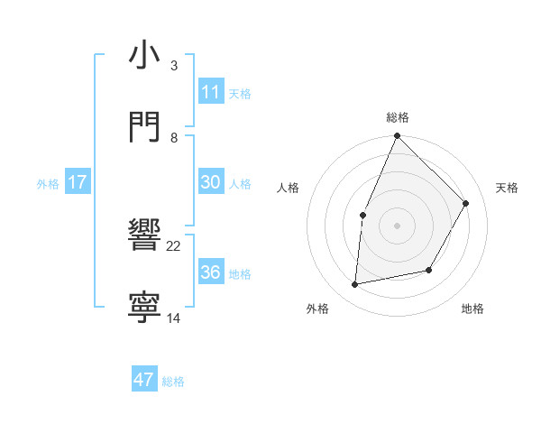 小門 響寧さんの総格は47画の5点!