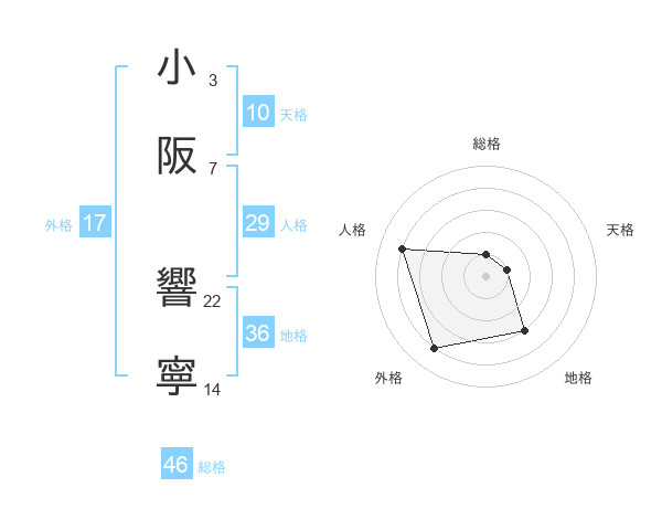 小阪 響寧さんを姓名の画数から五運を鑑定