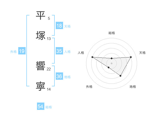 平塚 響寧さんの天格は18画の4点!