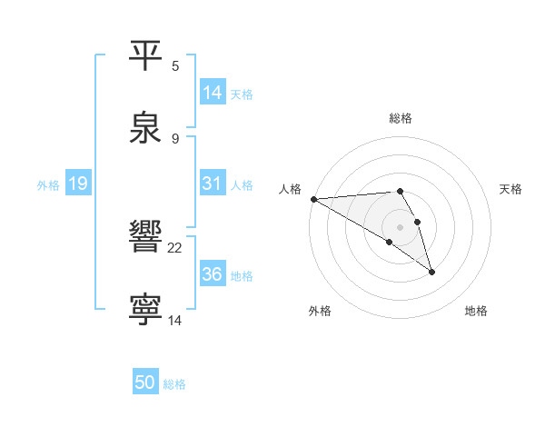 平泉 響寧さんの総格は50画の2点!