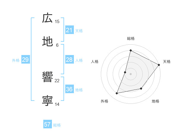広地 響寧さんの天格は21画の5点!