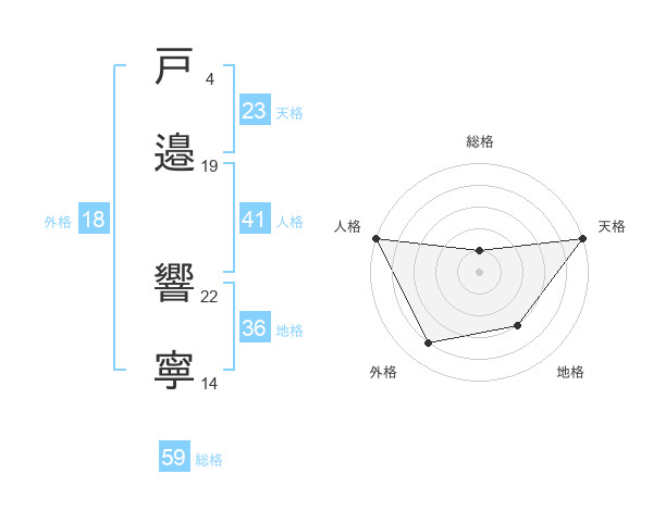 戸邉 響寧さんを姓名の画数から五運を鑑定