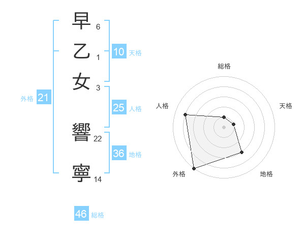 早乙女 響寧さんを姓名の画数から五運を鑑定