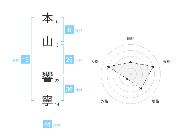 本山 響寧さんの天格は8画の4点!