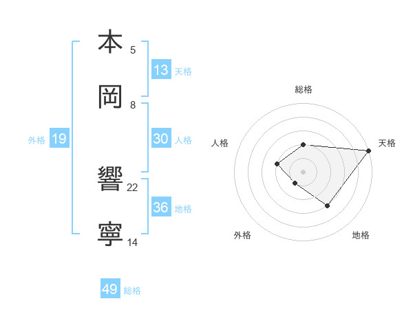 本岡 響寧さんを姓名の画数から五運を鑑定