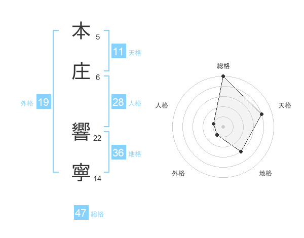 本庄 響寧さんの総格は47画の5点!