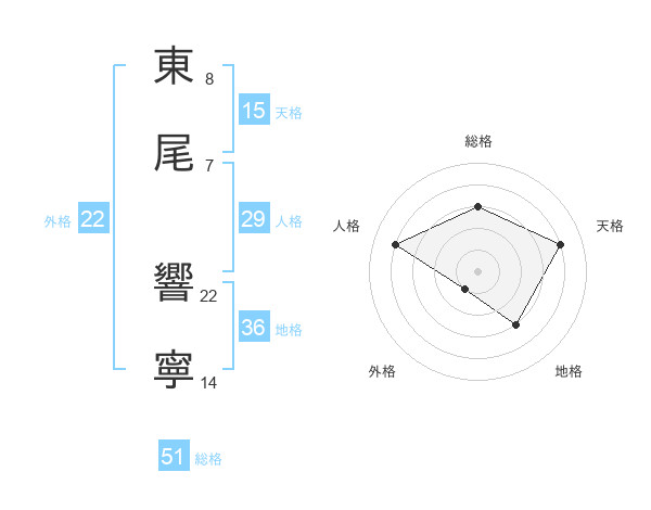 東尾 響寧さんの総格は51画の3点!