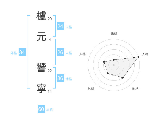櫨元 響寧さんを姓名の画数から五運を鑑定