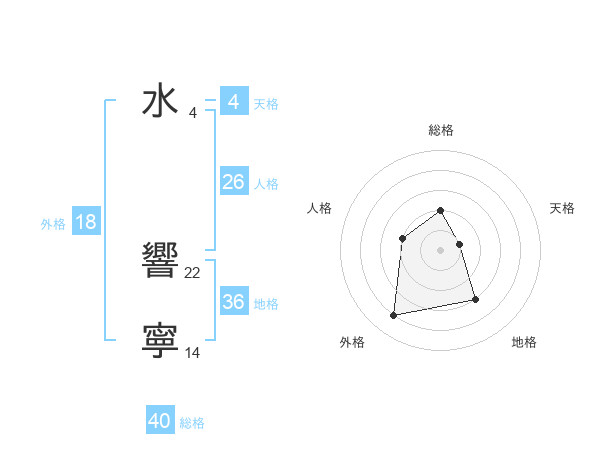 水 響寧さんの総格は40画の2点!
