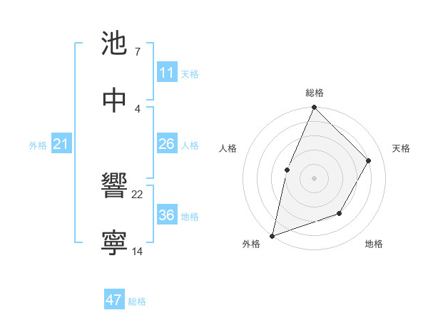 池中 響寧さんの総格は47画の5点!