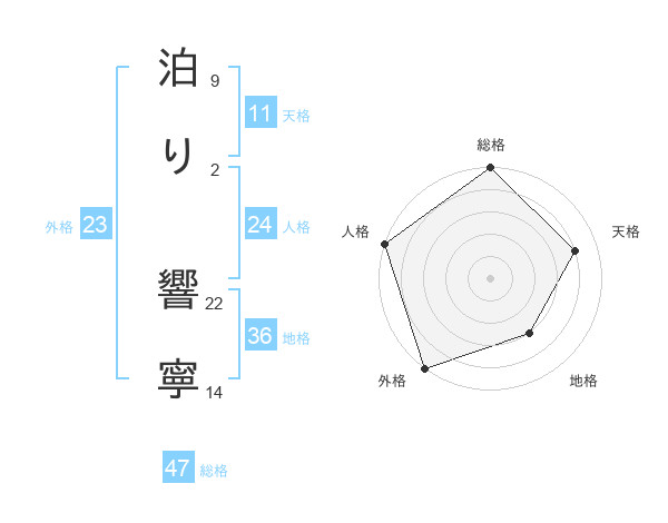 泊り 響寧さんの総格は47画の5点!